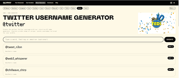 Twitter Name Generator – Sugeridor de nombres de usuario