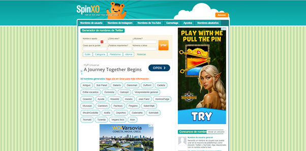 SpinXO Twitter Names – Creador de combinaciones personalizadas